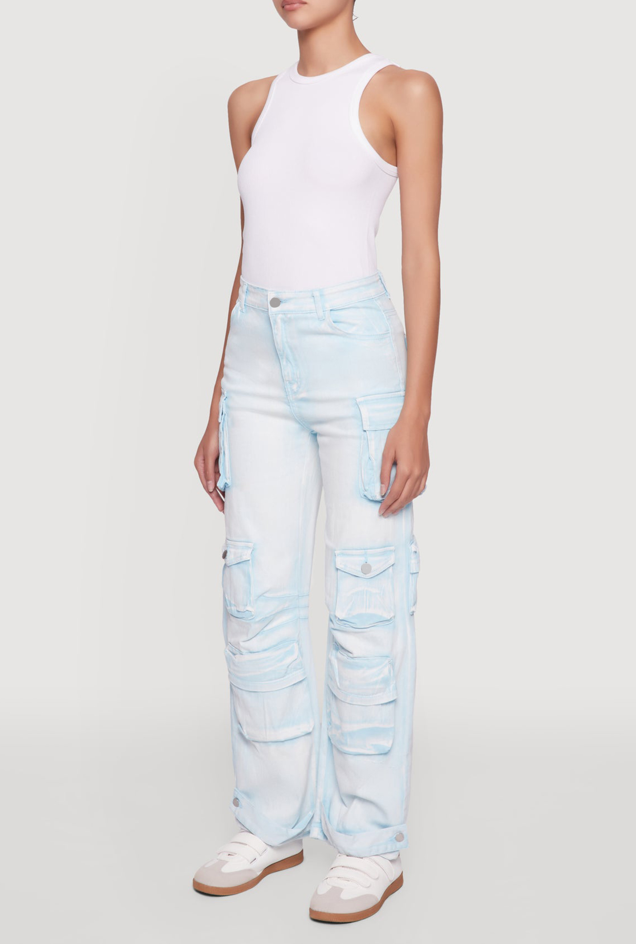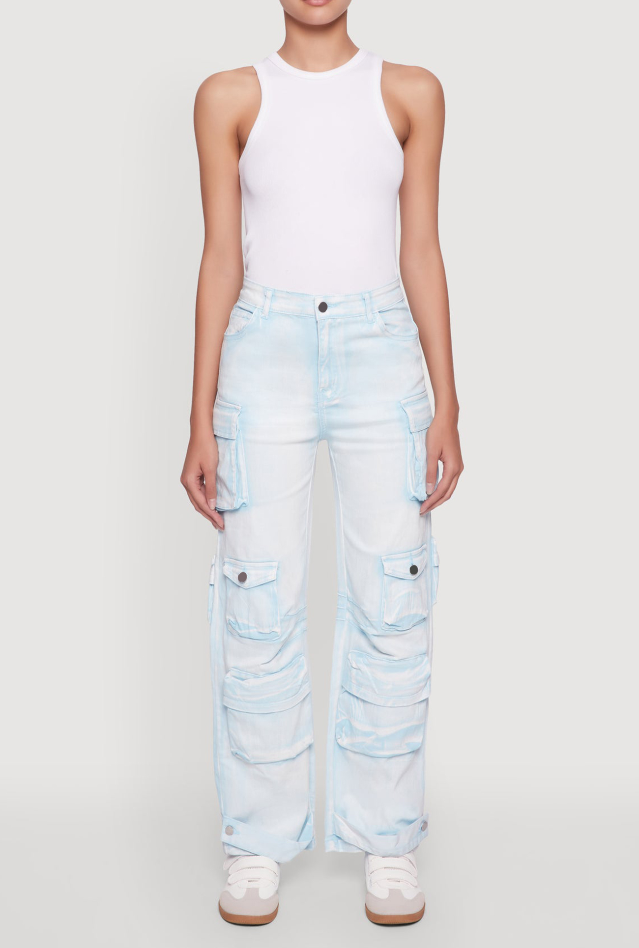 Perfect for adding a touch of edgy chic to your everyday look, these pants combine comfort and style effortlessly. The acid wash finish gives them a cool, vintage vibe, while the high waist and wide leg silhouette keep you feeling confident and comfortable all day long. Whether you're out with friends or running errands, these versatile cargo pants are your new go-to for effortless fashion.