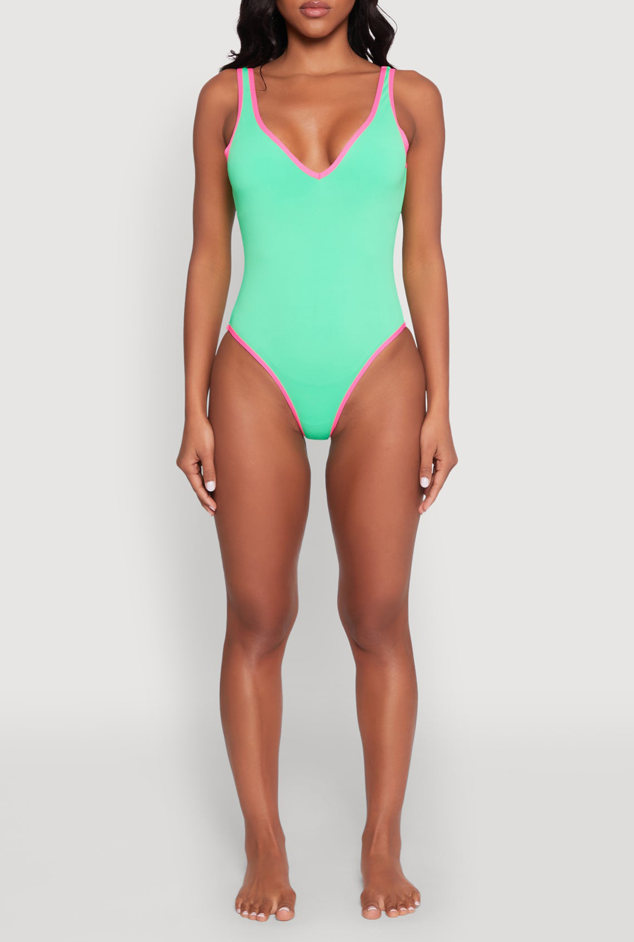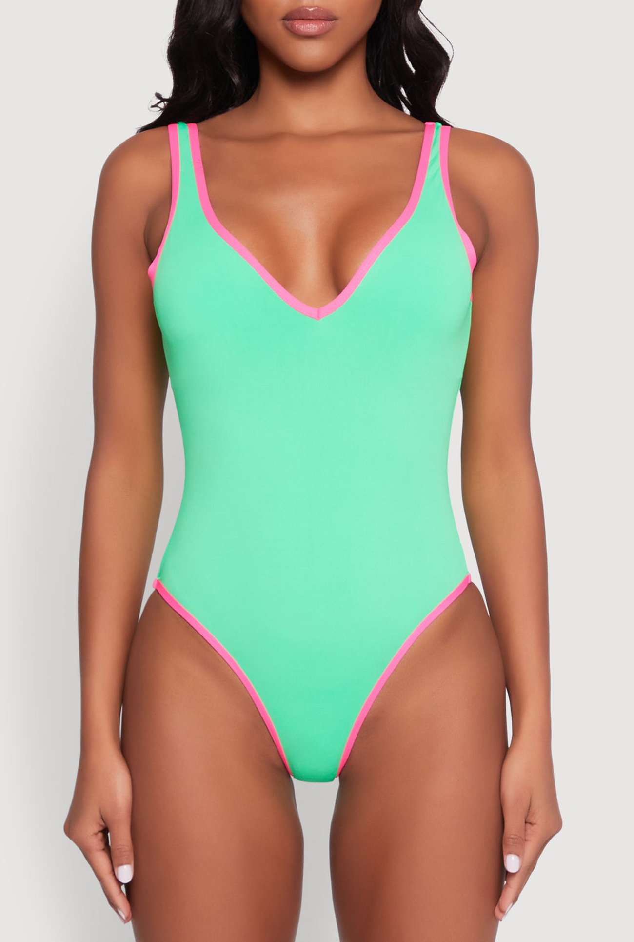 Get ready to turn heads at the beach or pool with our Color blocked edge one-piece swimsuit. This vibrant piece combines playful pastel hues with bold neon accents, making it perfect for those who want to stand out and make a splash. The sleek plunge neckline and sleeveless design give it a flirty, confident vibe, while the removable padding ensures you stay comfortable and supported all day long. Whether you're lounging or taking a dip, this swimsuit is your new go-to for fun, fashion, and all-day comfort.