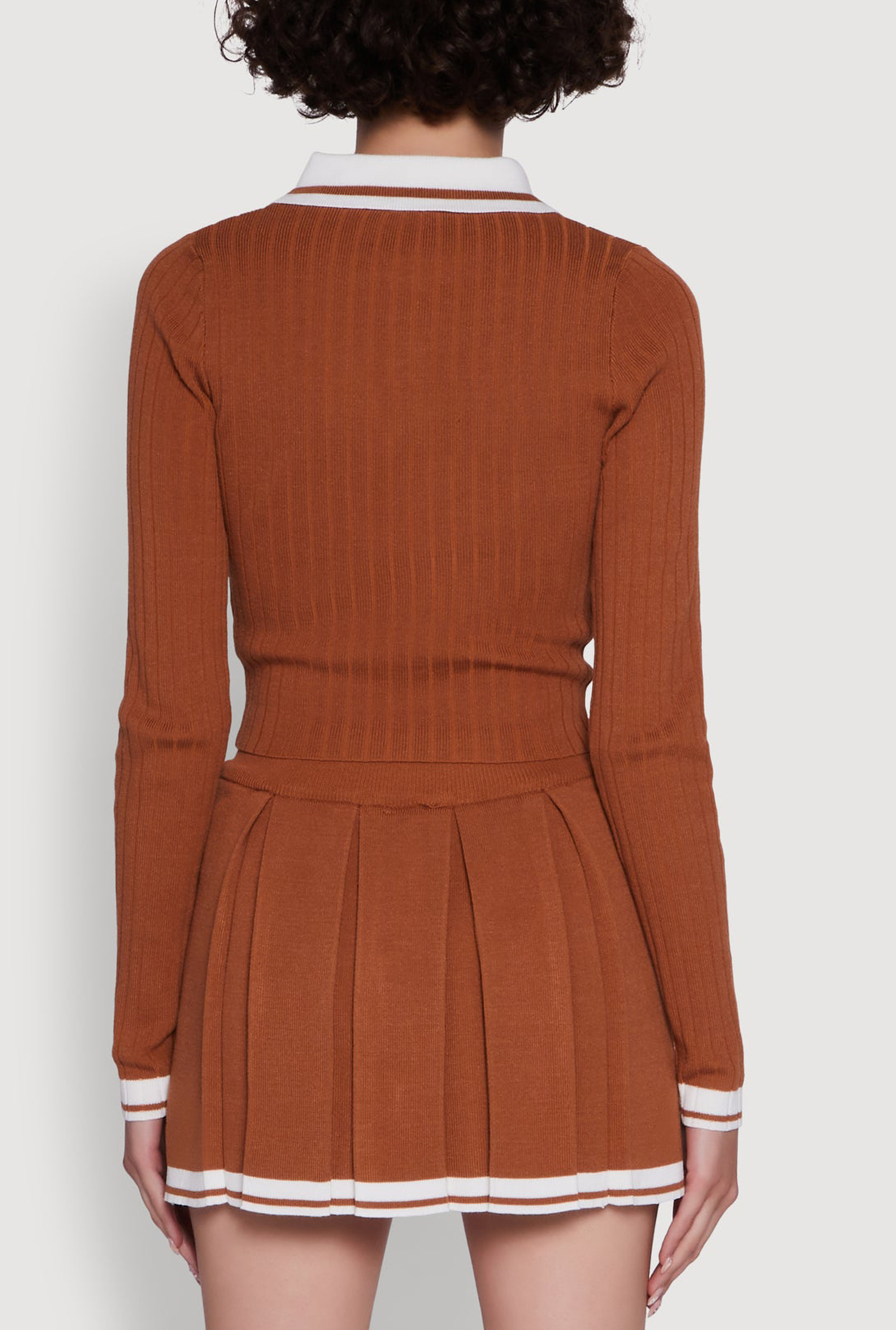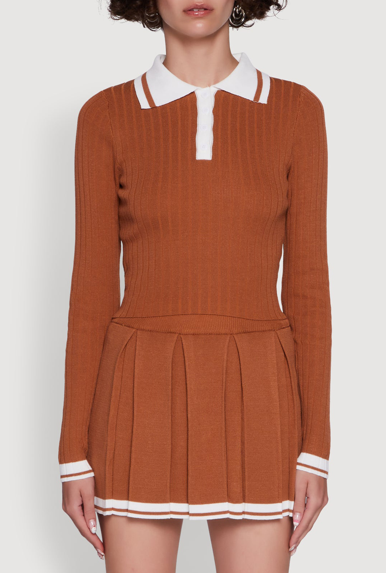 Step up your casual game with the Contrasting polo shirt. This classic fit sweater combines timeless polo collar vibes with a fresh varsity stripe detail that’s perfect for back to school or chill weekends. The ribbed knit fabric hugs you just right, while the button front adds a cool, laid-back touch. Whether you’re layering or rocking it solo, this long sleeve top is your new go-to for effortless style that never quits.