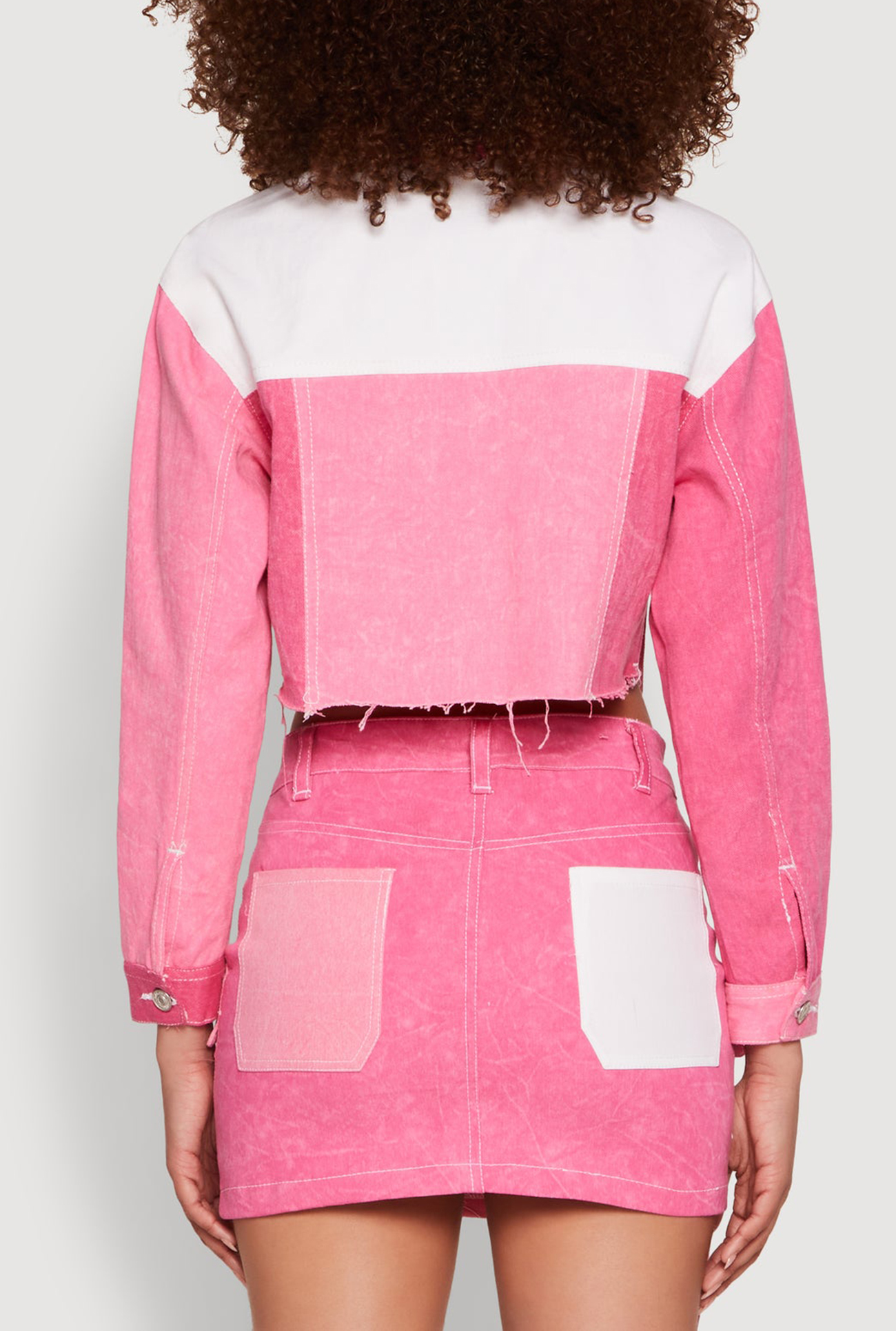 Upgrade your wardrobe with this Cotton color blocked jacket. Perfect for adding a pop of style to any casual outfit, this jacket combines classic denim with eye-catching color blocking details. Its cropped hem and long sleeves make it a versatile piece that works for day or night. Whether you're heading out with friends or just want to elevate your everyday look, this jacket is your new go-to. Embrace the trend and express your unique style with this must-have piece.