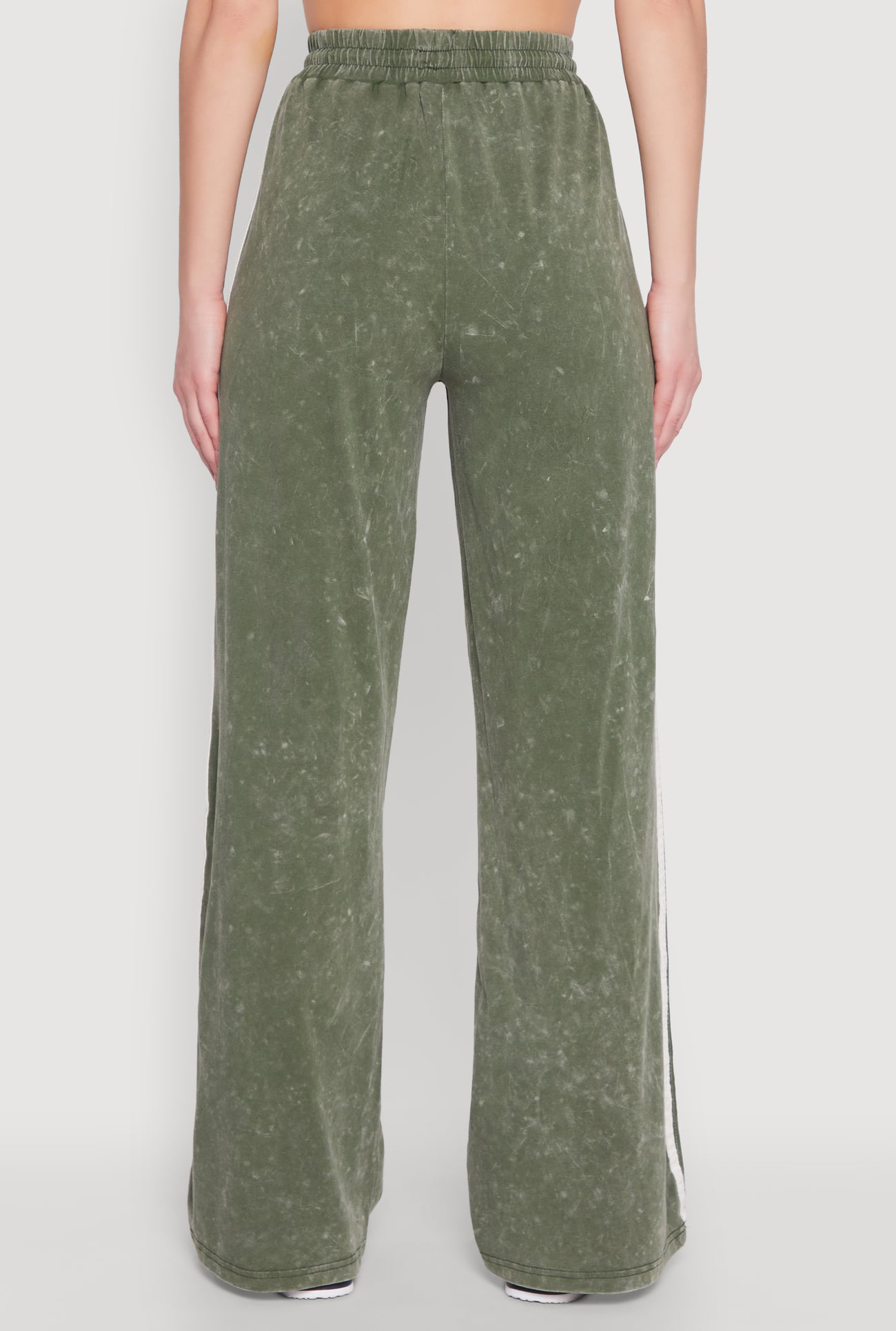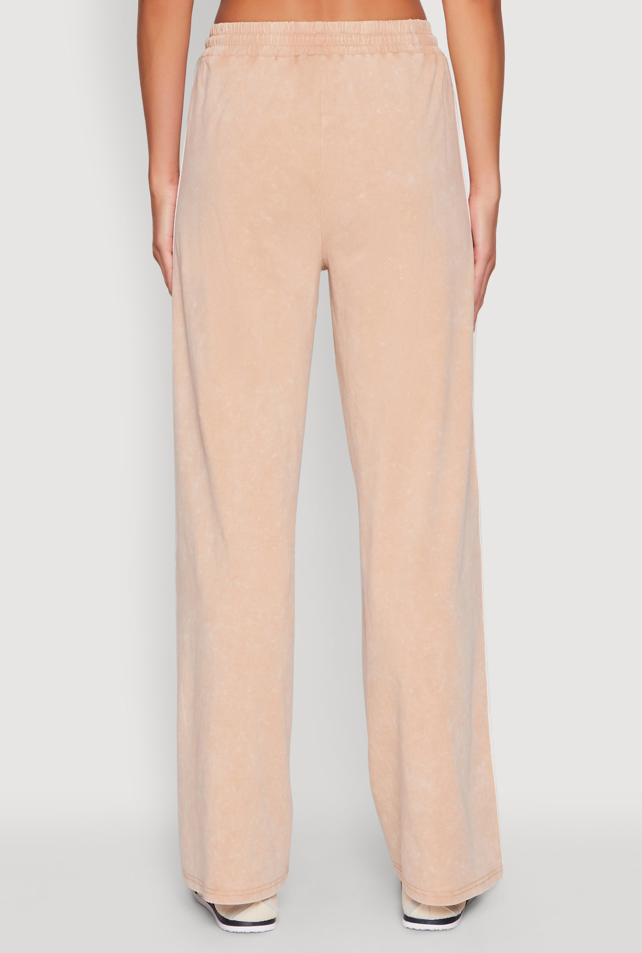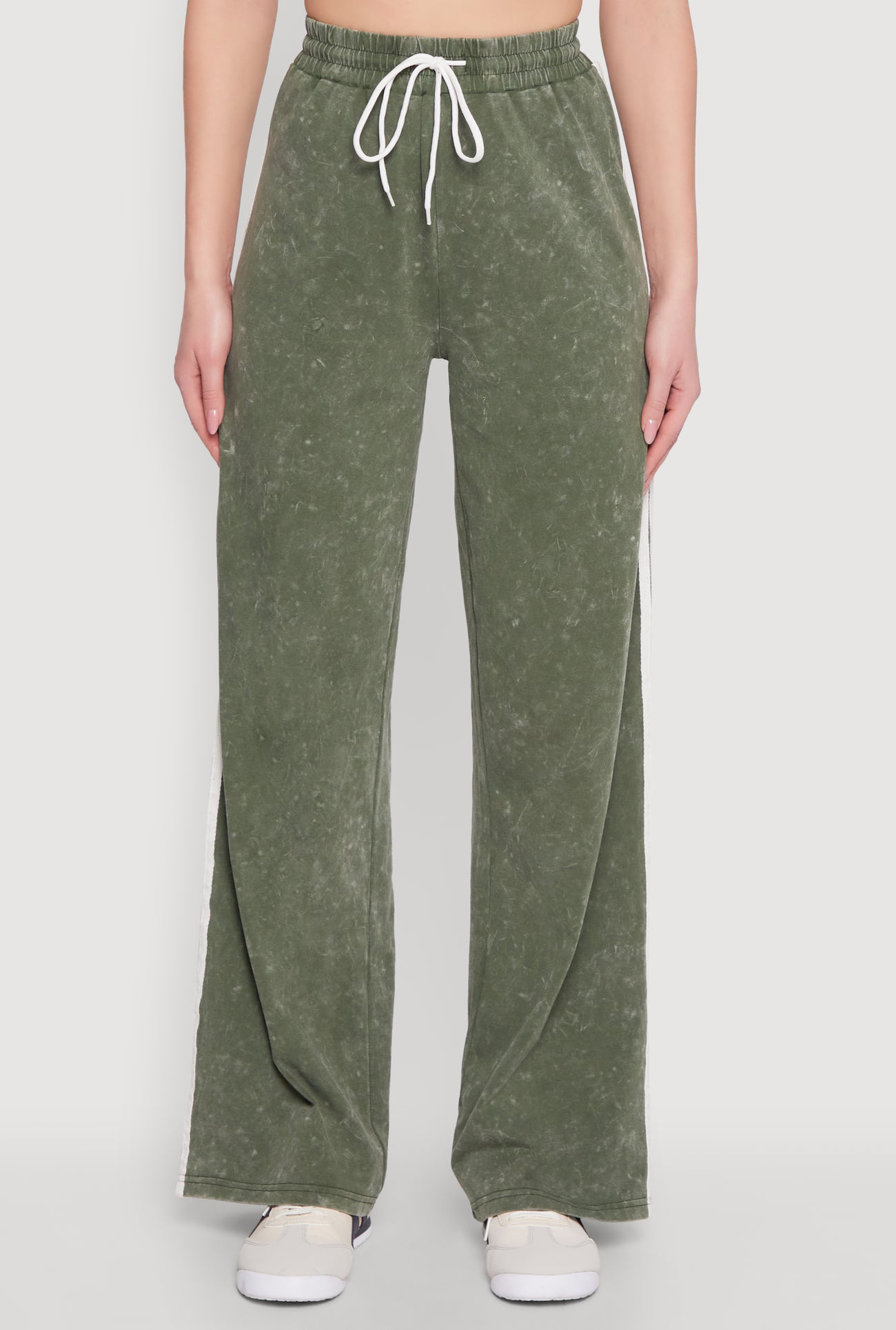 Perfect for lounging or running errands, these sweatpants combine comfort and style effortlessly. Featuring a trendy varsity stripe detail and a high-waisted, wide-leg fit, they’re your new go-to for laid-back days. The drawstring waist ensures a perfect fit, while the mineral wash finish adds a unique, worn-in vibe. Whether you're hitting the gym or just chilling at home, these sweatpants are designed to keep you looking cute and feeling comfy.