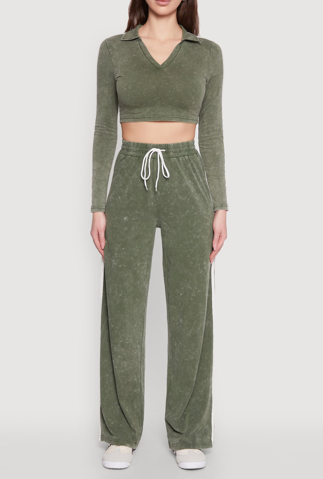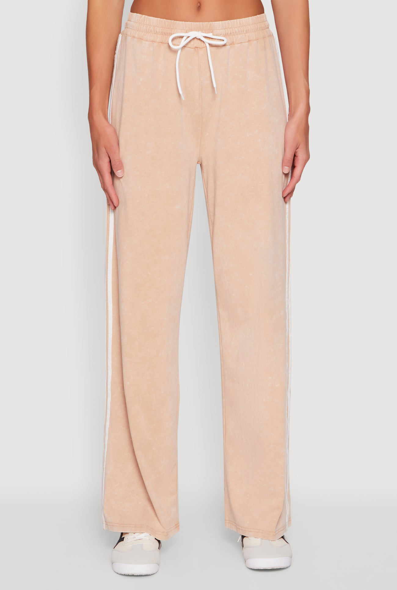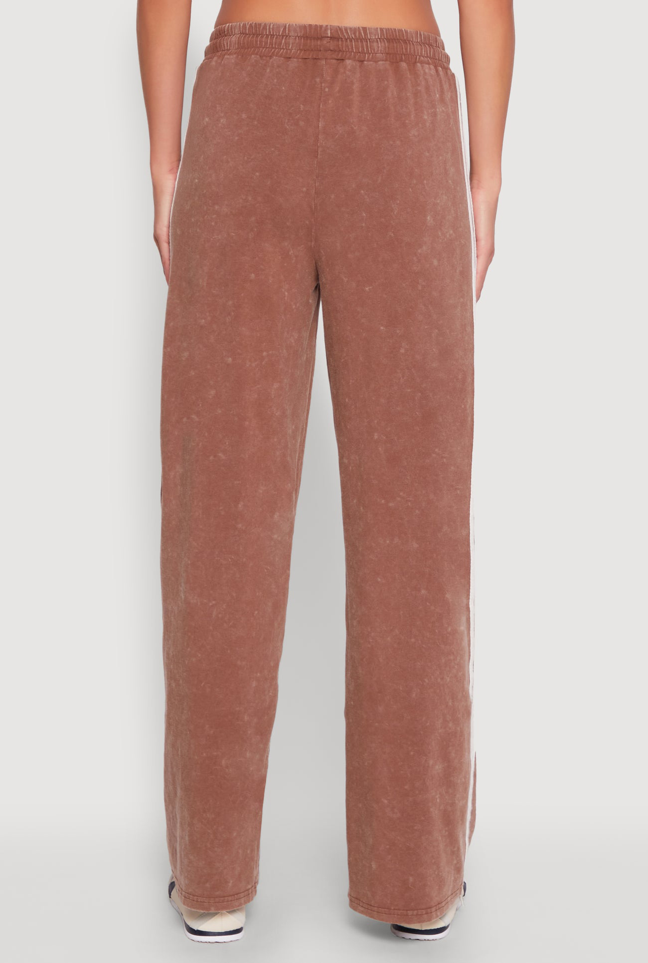 Perfect for lounging or running errands, these sweatpants combine comfort and style effortlessly. Featuring a trendy varsity stripe detail and a high-waisted, wide-leg fit, they’re your new go-to for laid-back days. The drawstring waist ensures a perfect fit, while the mineral wash finish adds a unique, worn-in vibe. Whether you're hitting the gym or just chilling at home, these sweatpants are designed to keep you looking cute and feeling comfy.