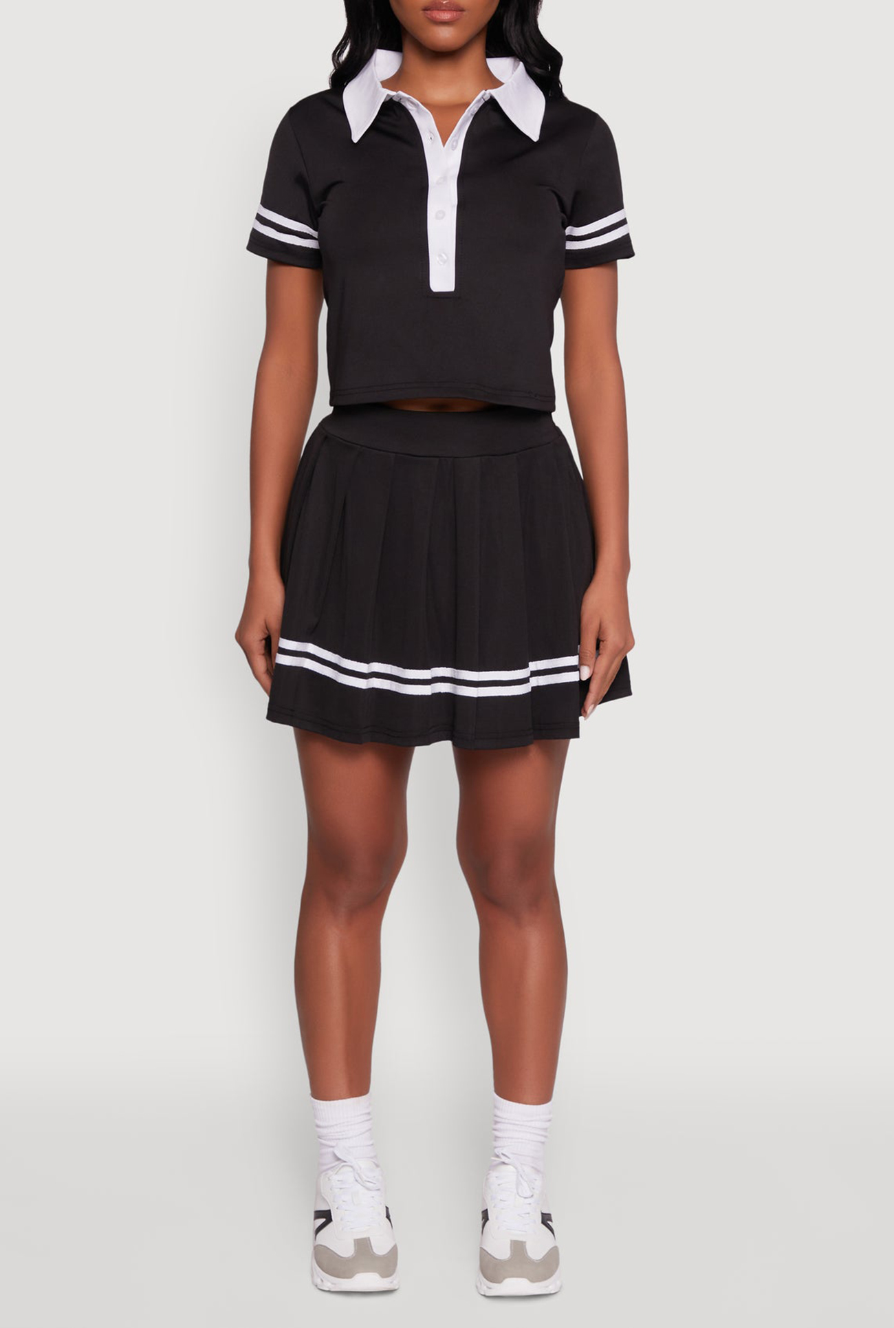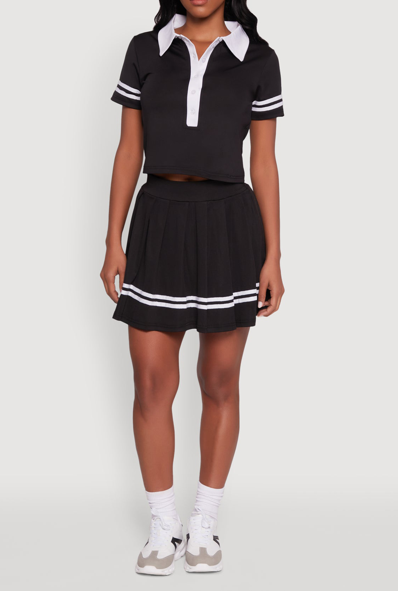 Step into style with our High Waisted Skirt, the perfect blend of sporty chic and effortless cool. Designed to turn heads, this high waisted mini skirt features bold varsity stripes and a flattering pleated silhouette that moves with you. Whether you're heading out with friends or just want to elevate your everyday look, this skirt is your new go-to for making a statement without breaking the bank.