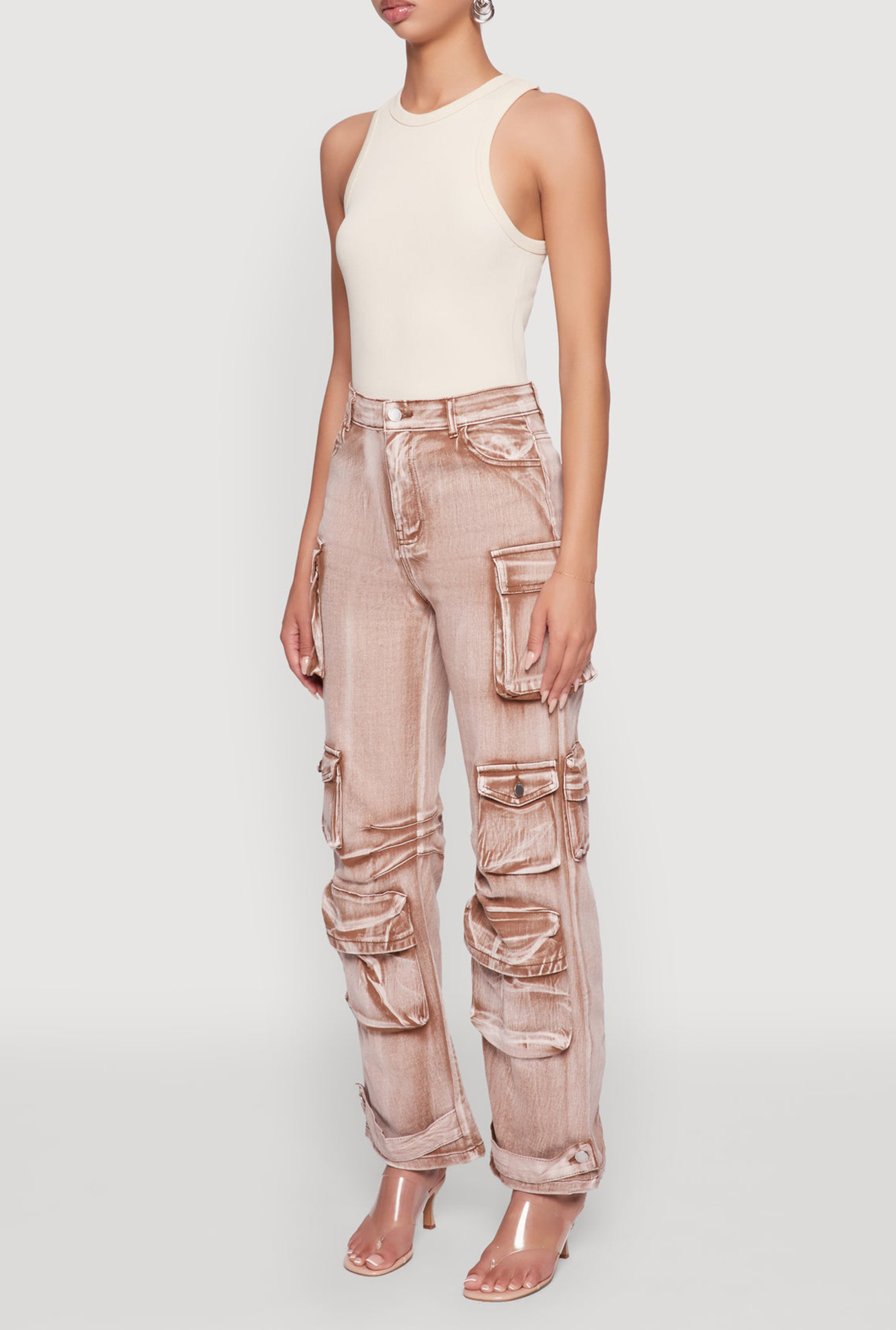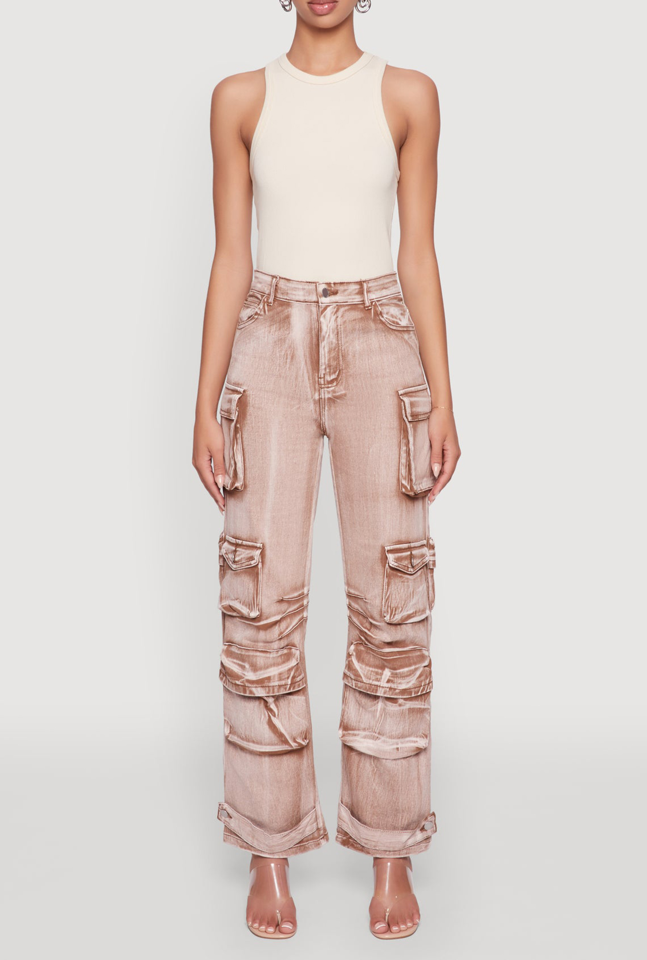 Perfect for adding a touch of edgy chic to your everyday look, these pants combine comfort and style effortlessly. The acid wash finish gives them a cool, vintage vibe, while the high waist and wide leg silhouette keep you feeling confident and comfortable all day long. Whether you're out with friends or running errands, these versatile cargo pants are your new go-to for effortless fashion.