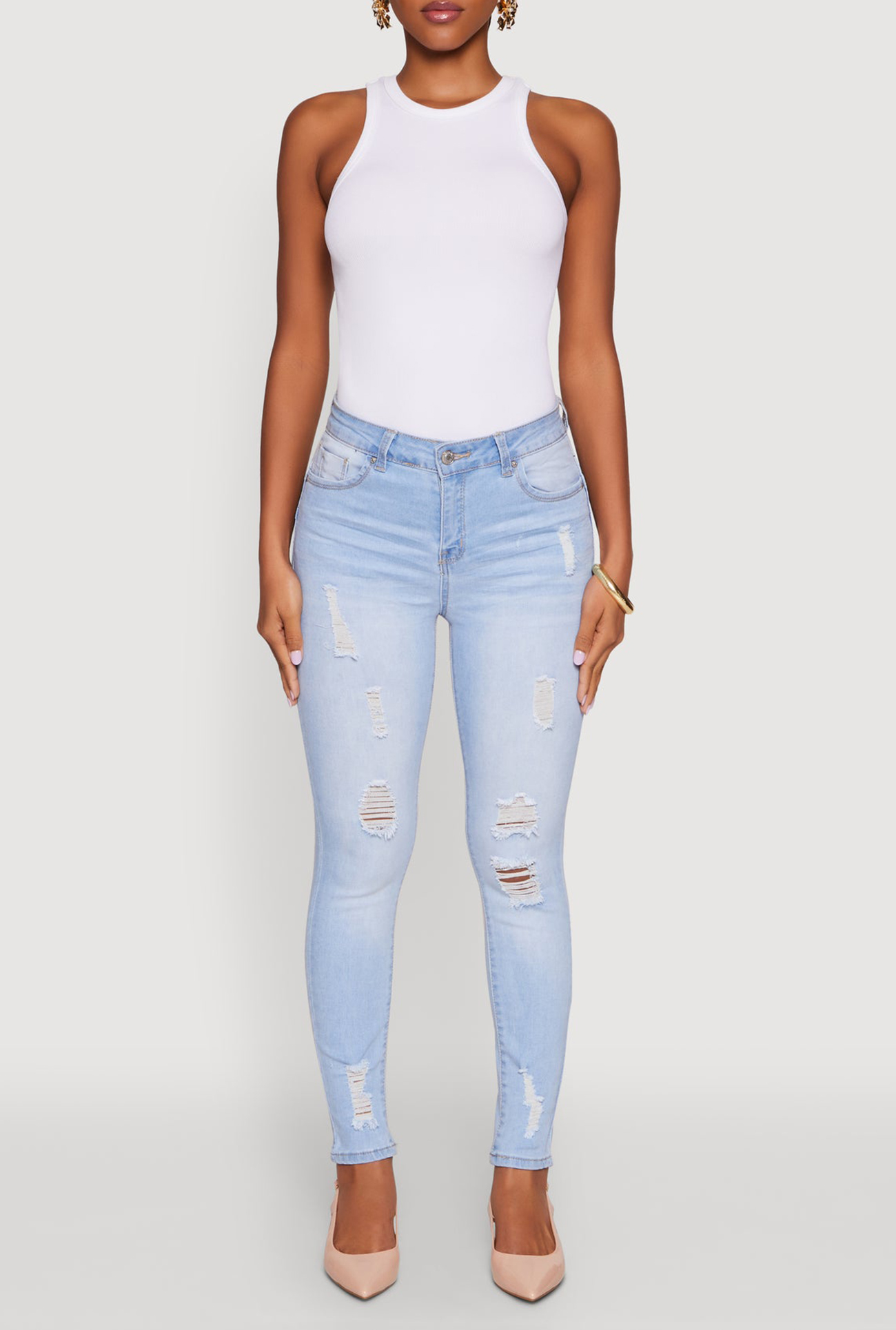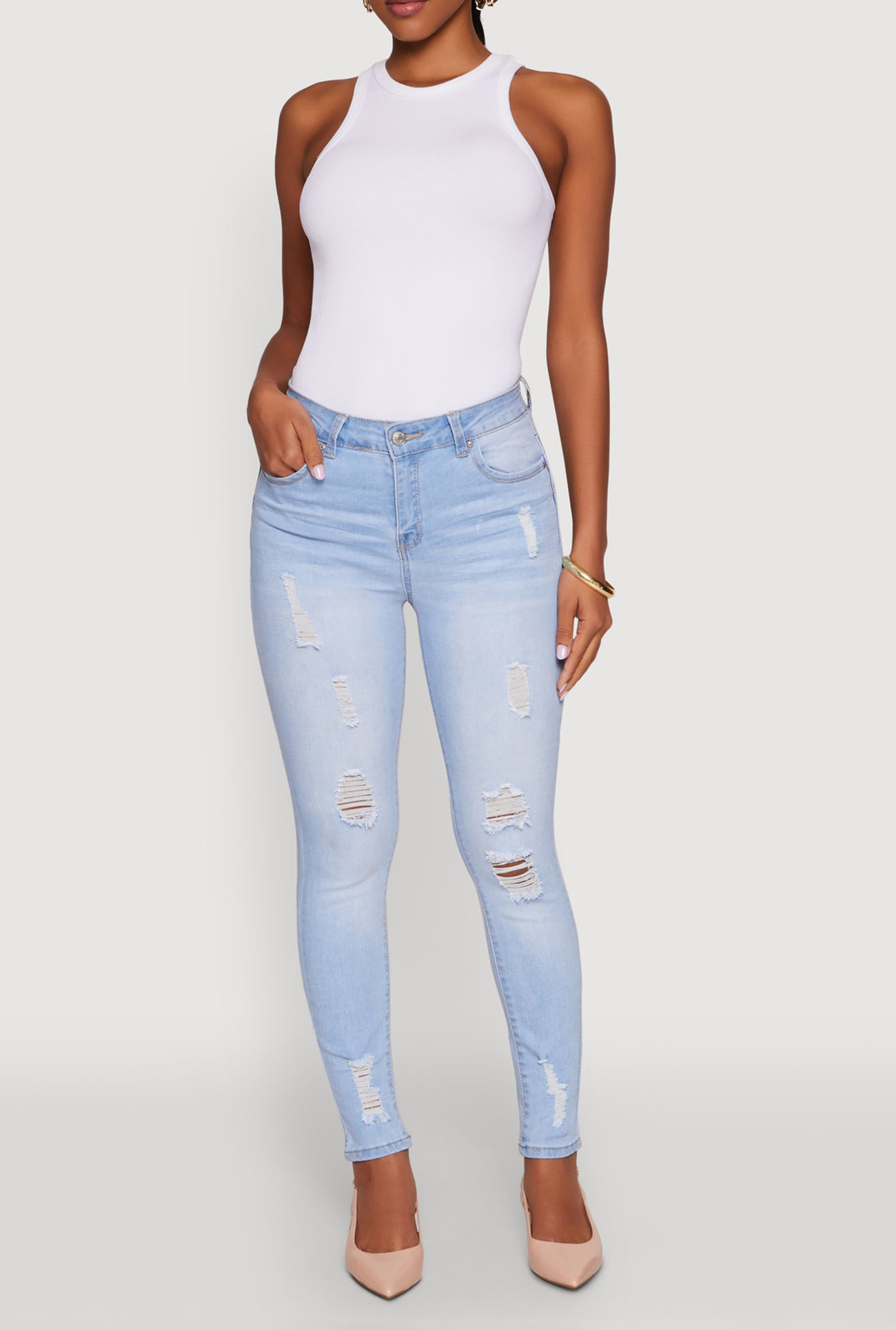 These jeans are the perfect blend of edgy and chic, featuring a trendy distressed look with frayed details that scream cool. Designed for comfort and style, they hug your curves with a skinny fit that moves with you. Whether you're heading out with friends or just want to elevate your everyday style, these jeans are your new go-to. Plus, the cropped hem adds a fun, flirty touch that’s perfect for showing off your favorite shoes.