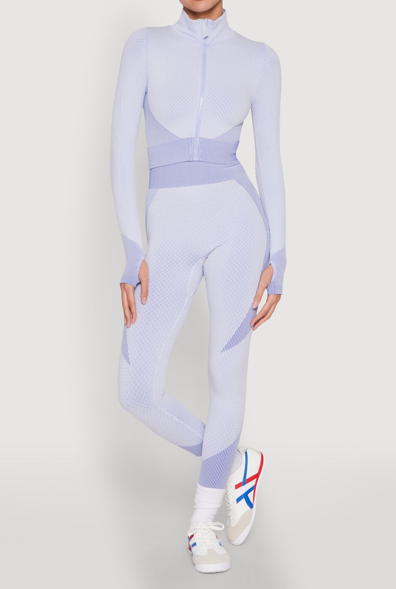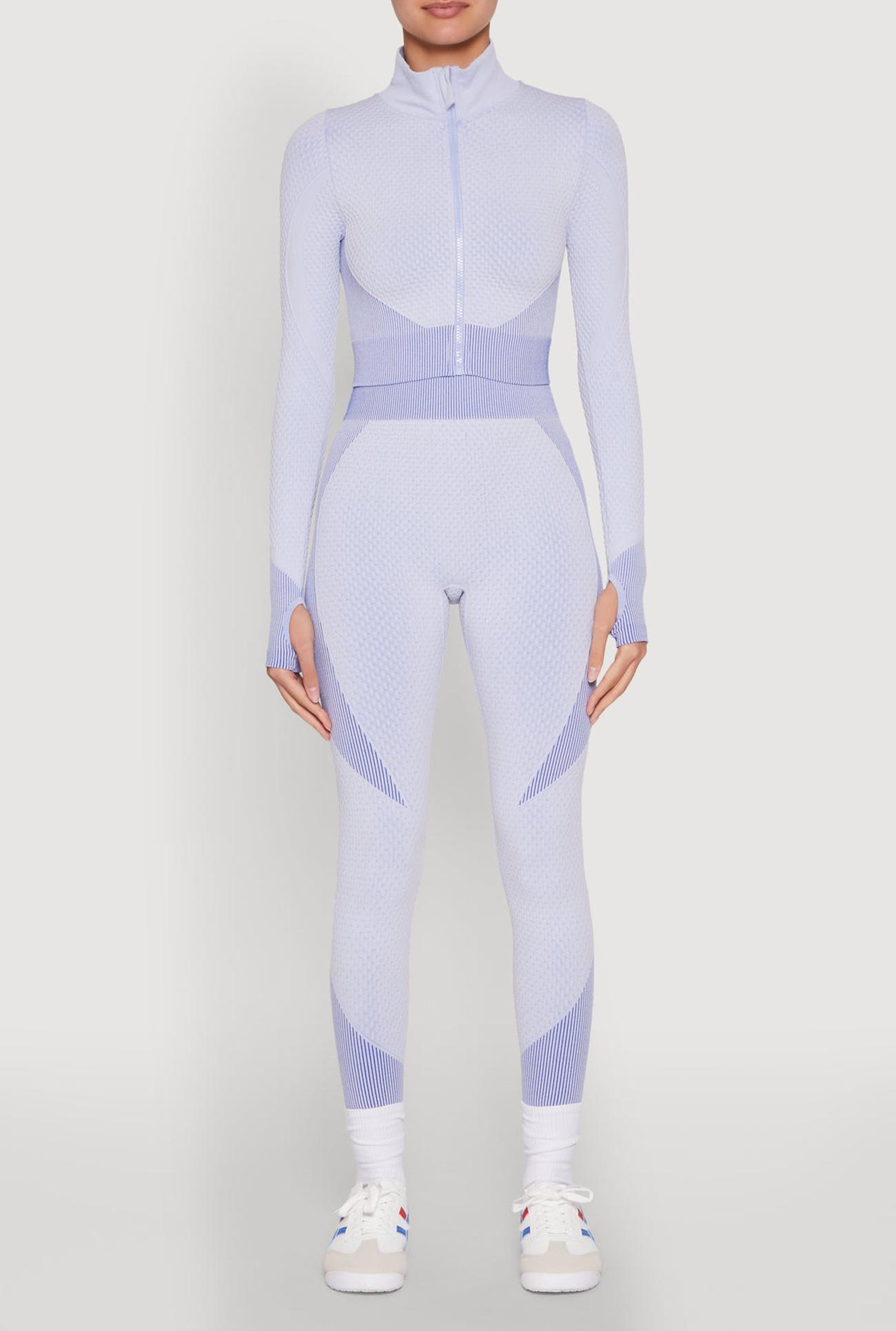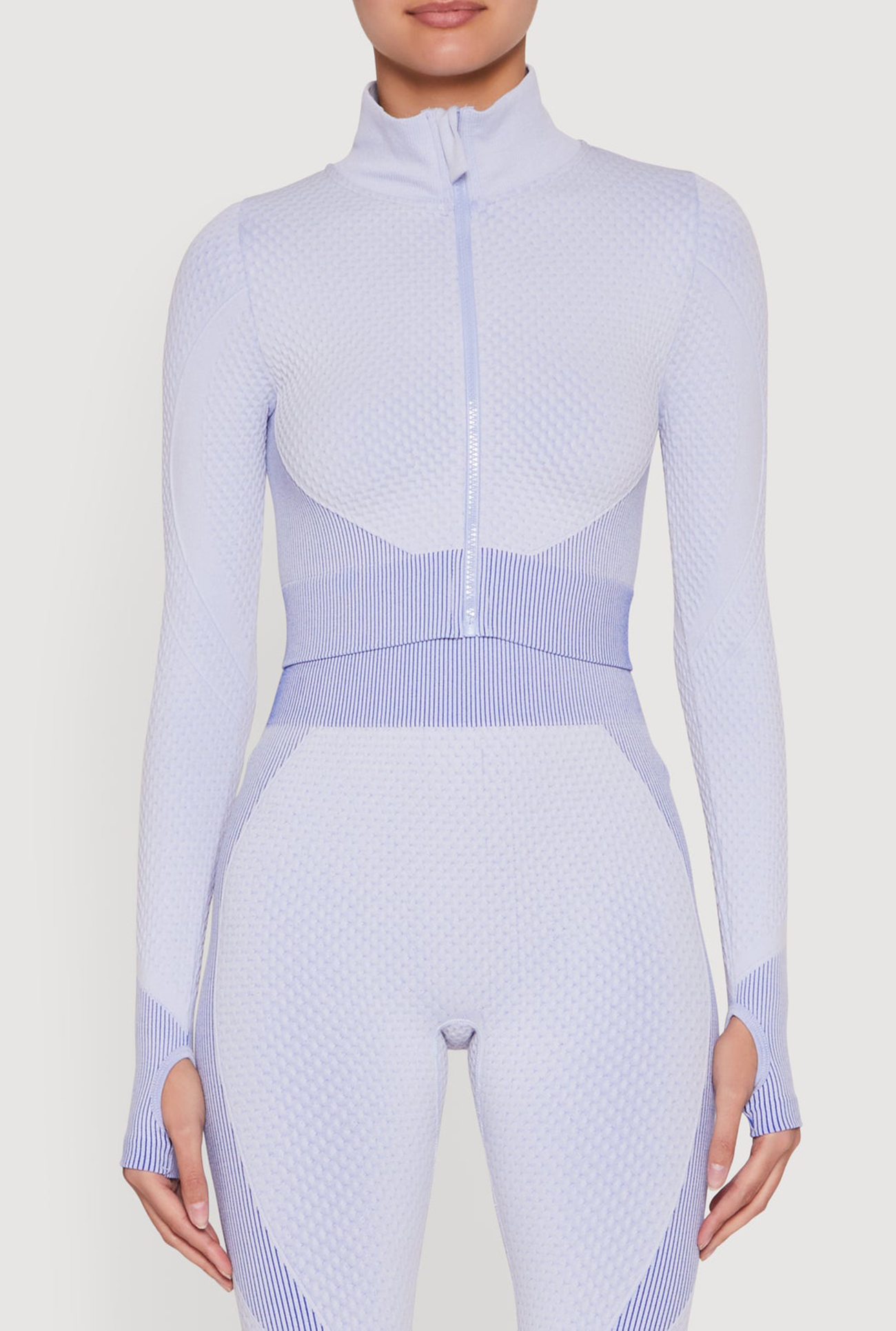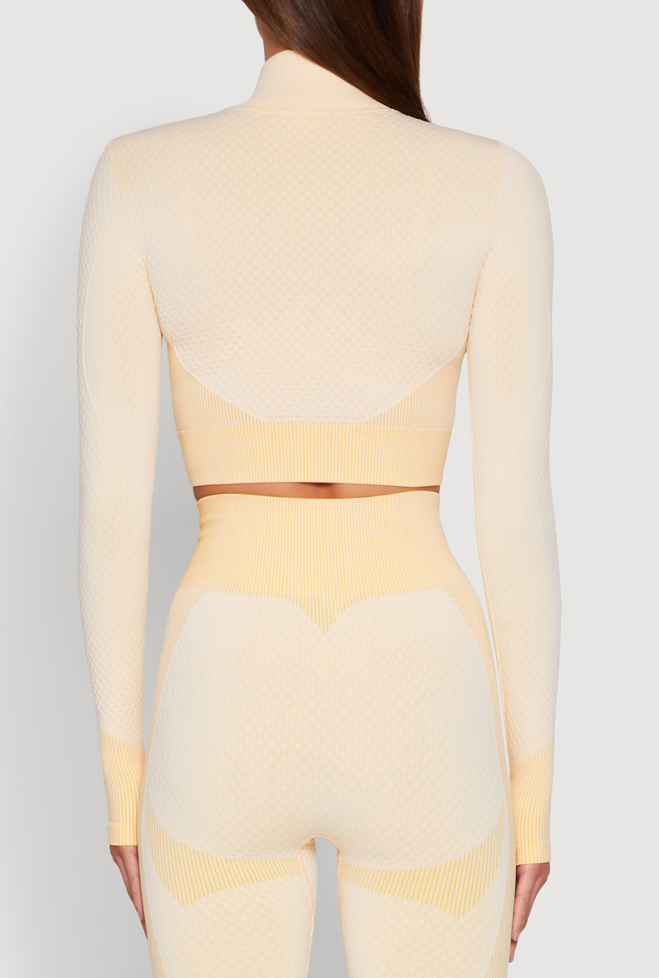 Step up your athleisure game with the Seamless waist hugging jacket. Designed for comfort and style, this cropped hem jacket features a sleek mock neck and long sleeves that keep you cozy during your workouts or casual outings. The textured knit fabric adds a touch of sophistication, while the bold striped details give it that effortlessly cool vibe. Whether you're hitting the gym or just running errands, this versatile piece is your new go-to for looking fresh and feeling confident.