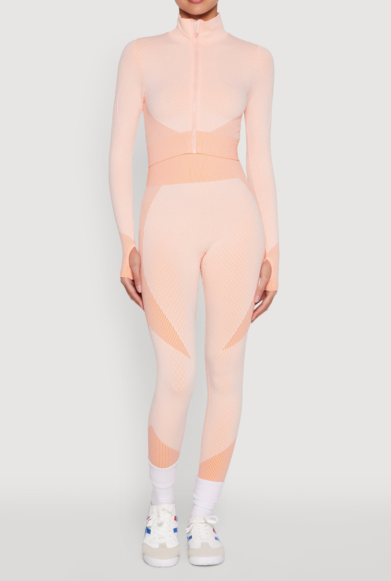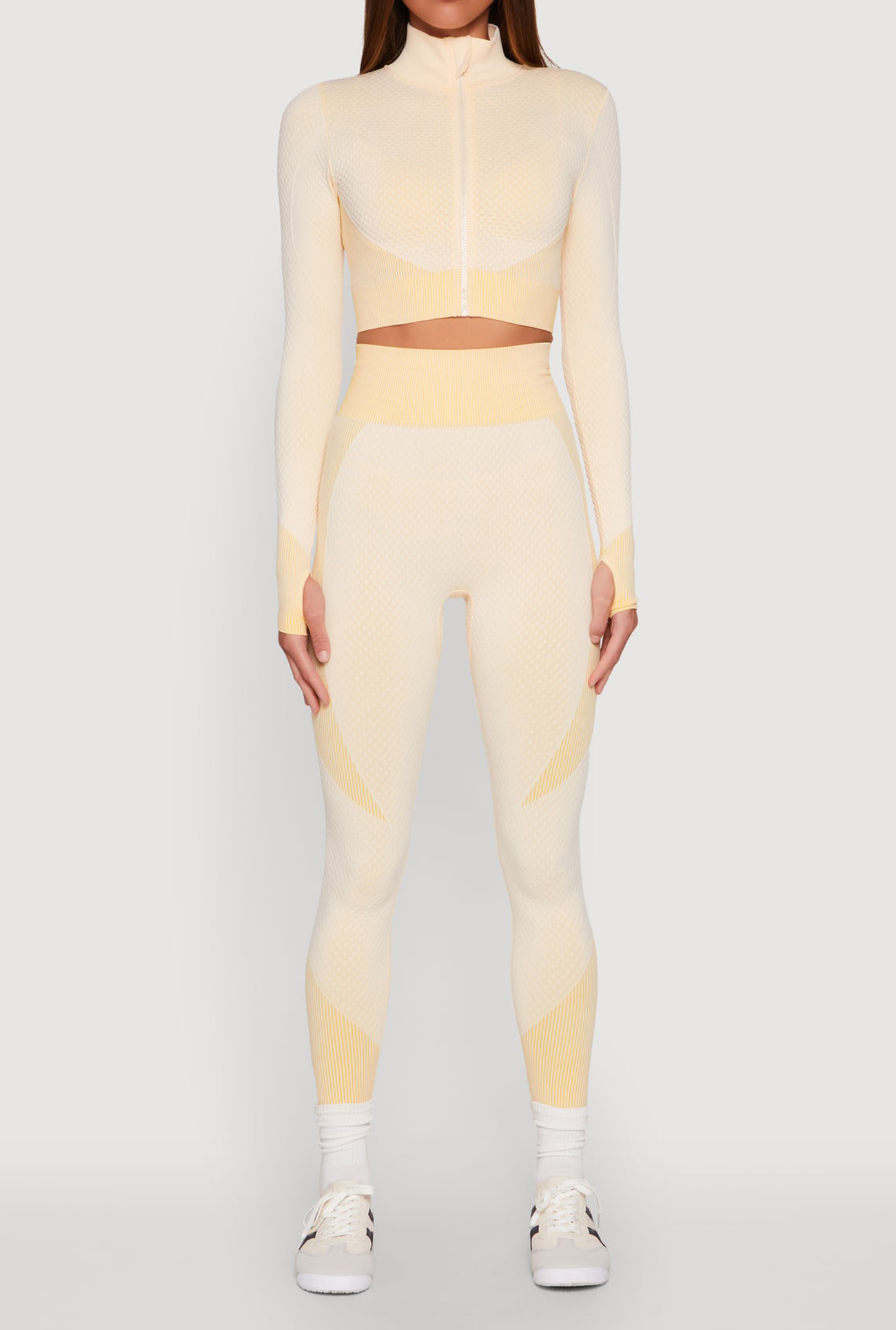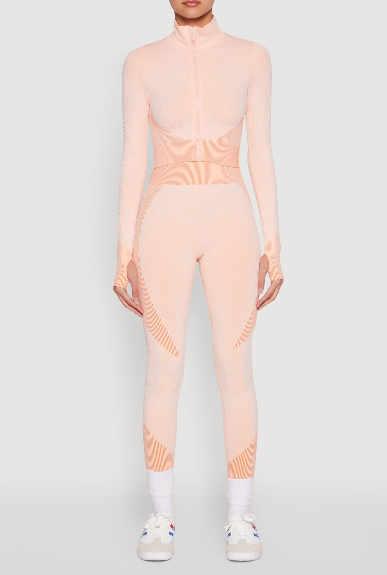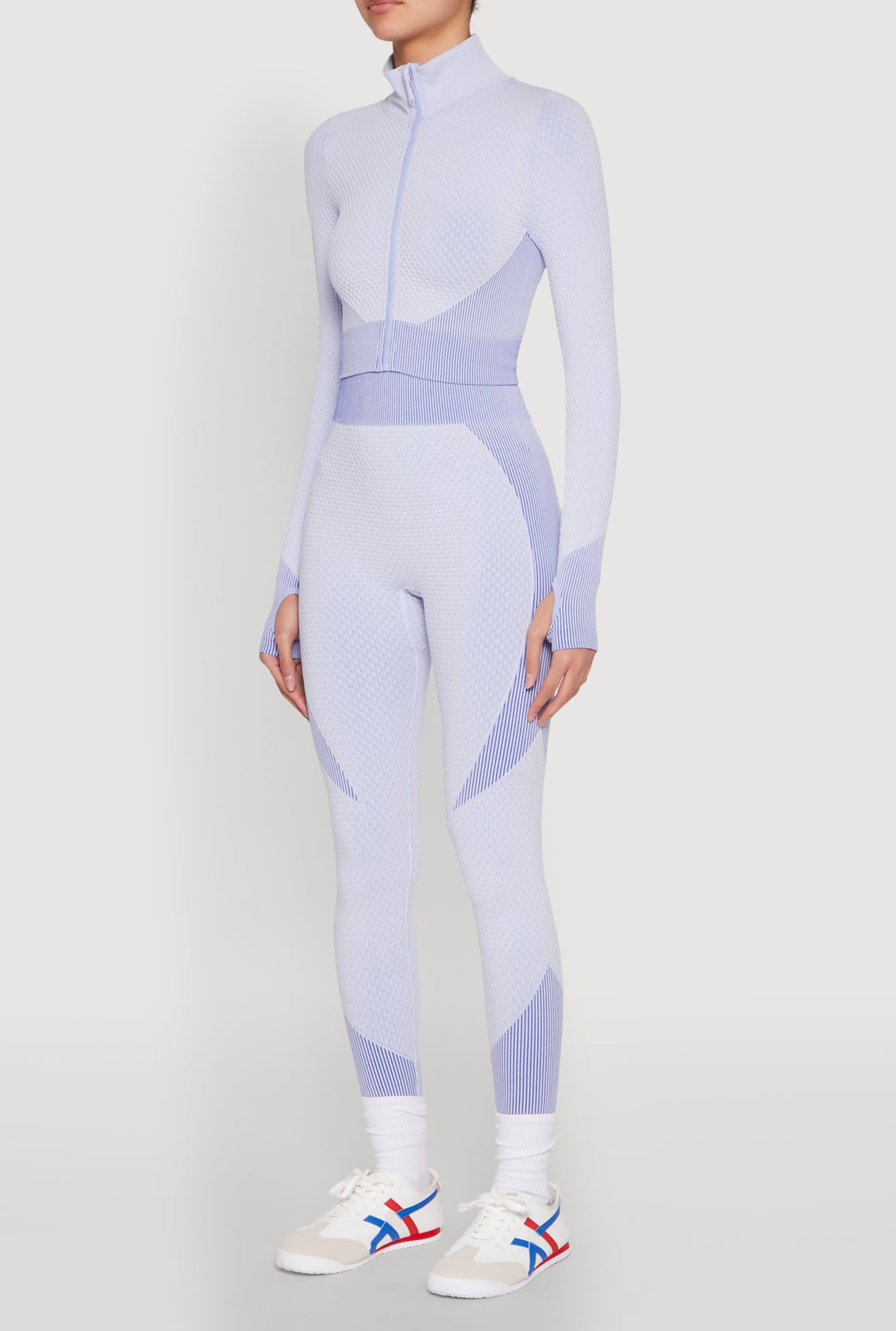Step up your athleisure game with the Seamless waist hugging jacket. Designed for comfort and style, this cropped hem jacket features a sleek mock neck and long sleeves that keep you cozy during your workouts or casual outings. The textured knit fabric adds a touch of sophistication, while the bold striped details give it that effortlessly cool vibe. Whether you're hitting the gym or just running errands, this versatile piece is your new go-to for looking fresh and feeling confident.