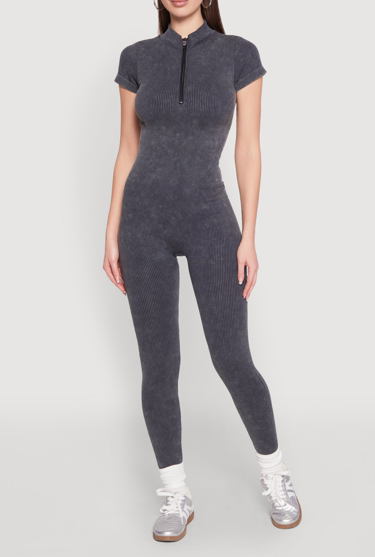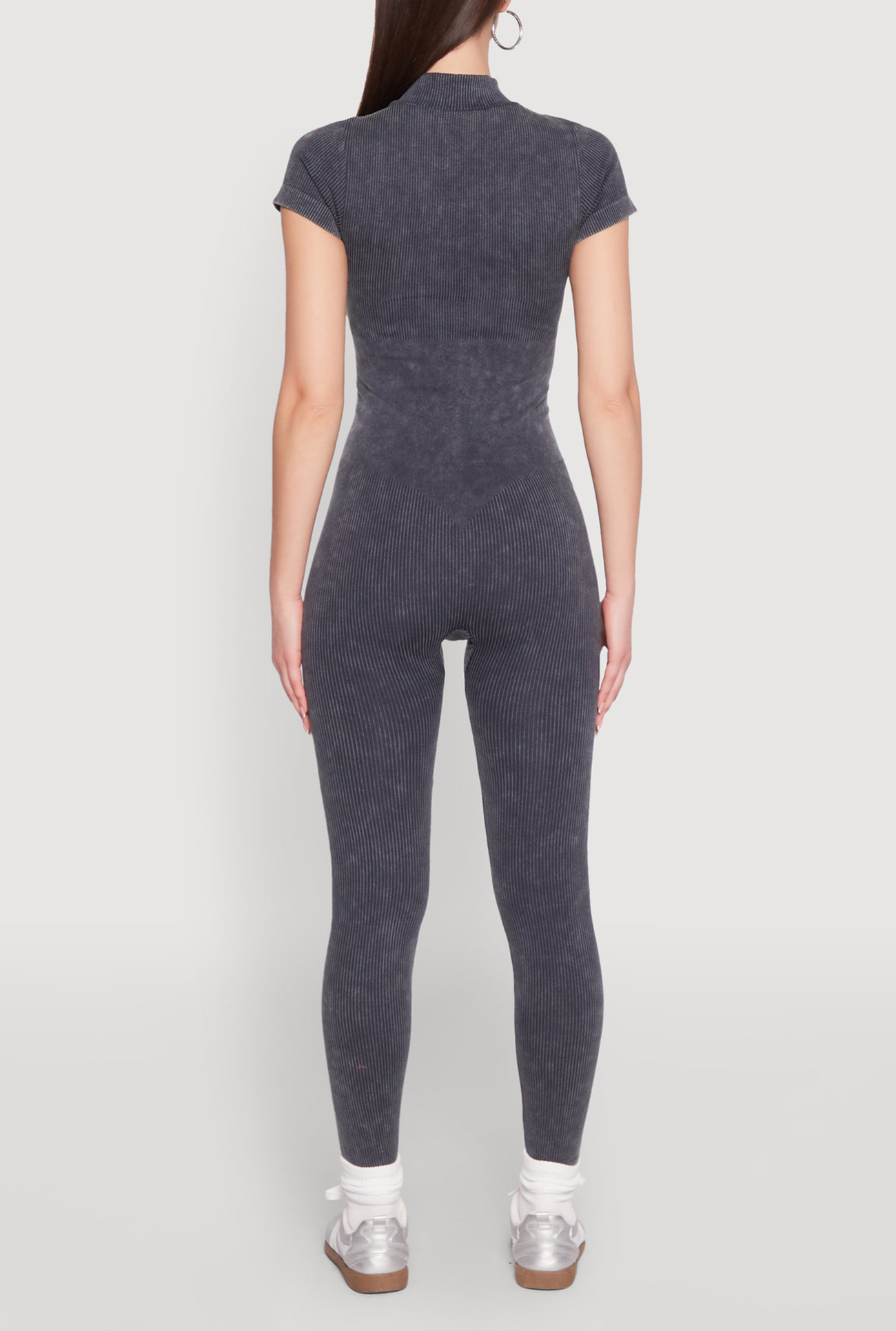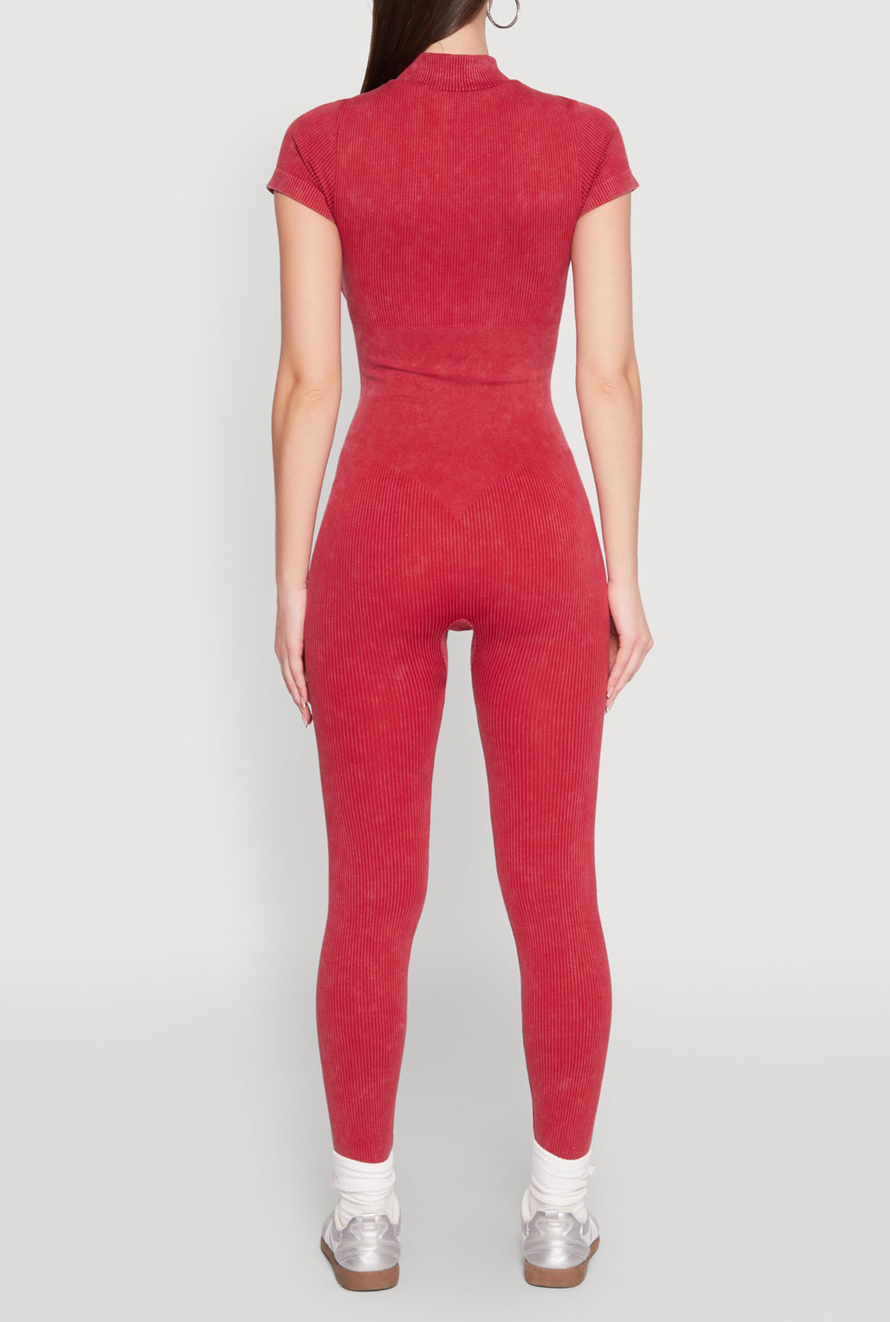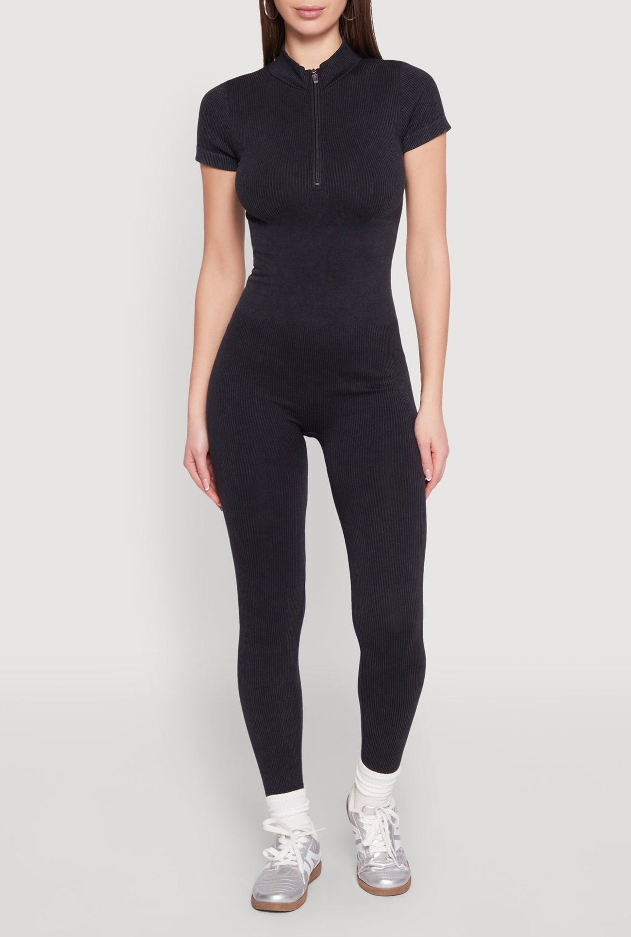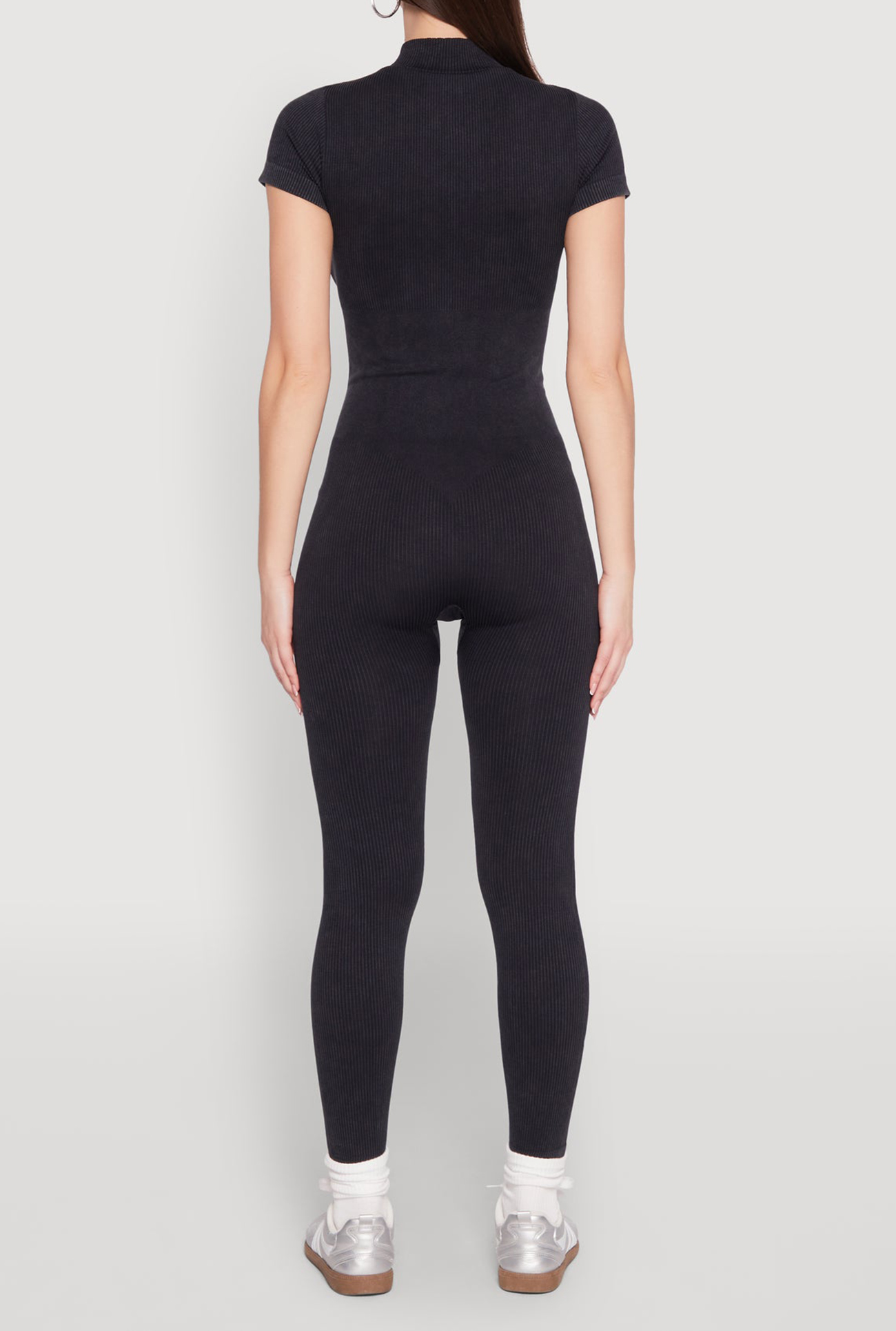 Upgrade your activewear game with our Small stand collar short sleeved jumpsuit, designed to keep you looking stylish and feeling confident during your workouts or casual outings. Made from comfy ribbed knit material, this sleek jumpsuit features a chic mock neck and short sleeves that effortlessly blend sporty and trendy. The skinny leg fit offers a flattering silhouette, while the seamless design and zippers add a touch of modern edge. Perfect for those who want versatile, affordable fashion that moves with them, this catsuit is a must-have for your wardrobe.