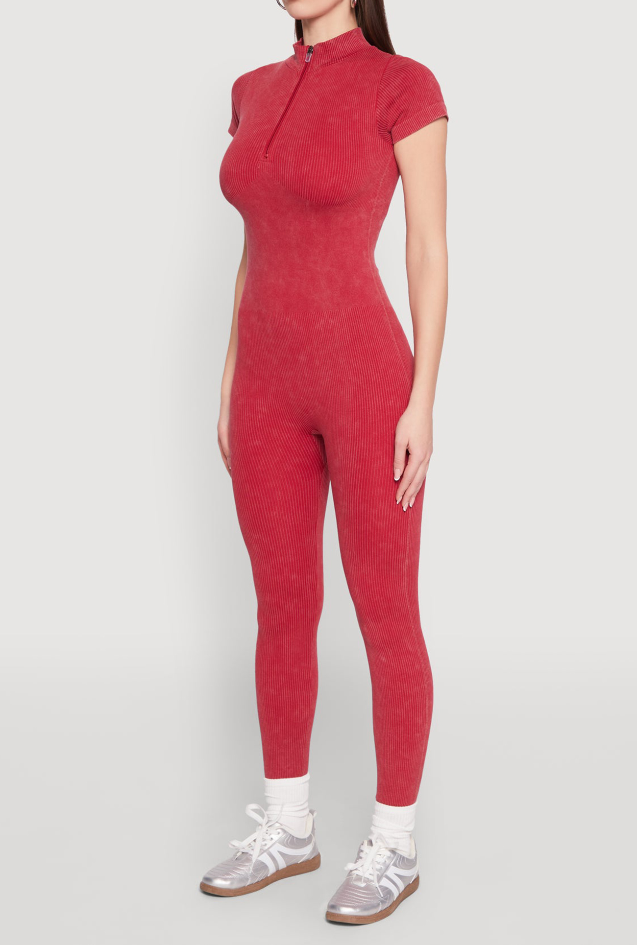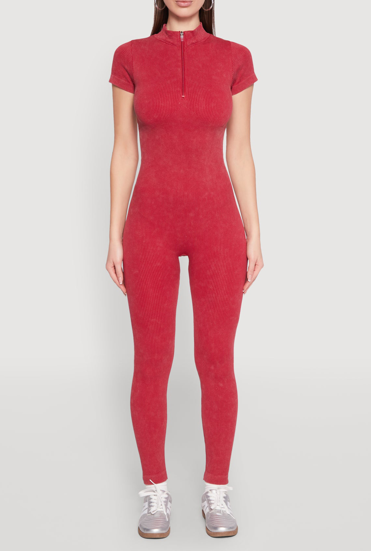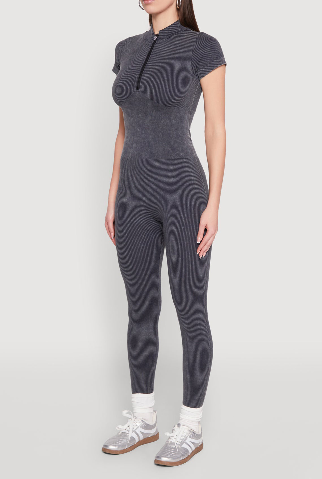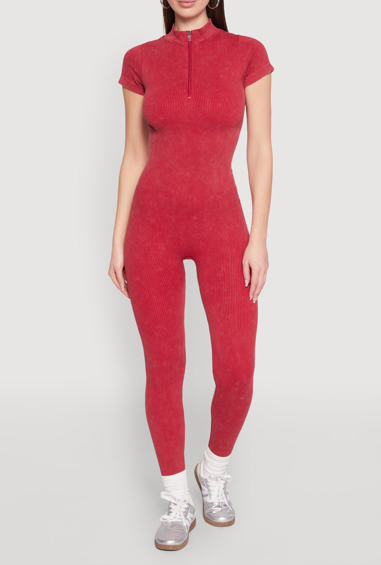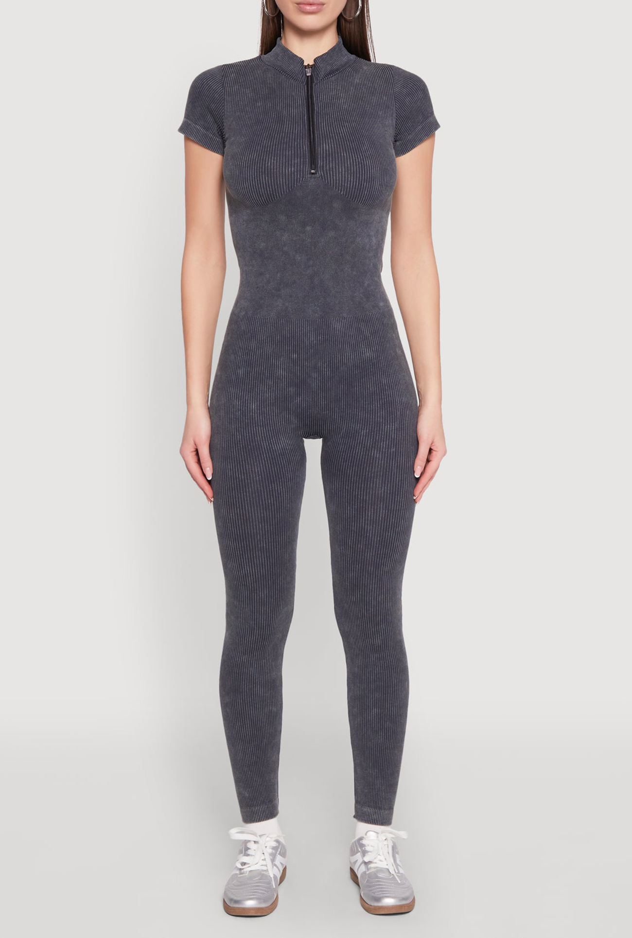 Upgrade your activewear game with our Small stand collar short sleeved jumpsuit, designed to keep you looking stylish and feeling confident during your workouts or casual outings. Made from comfy ribbed knit material, this sleek jumpsuit features a chic mock neck and short sleeves that effortlessly blend sporty and trendy. The skinny leg fit offers a flattering silhouette, while the seamless design and zippers add a touch of modern edge. Perfect for those who want versatile, affordable fashion that moves with them, this catsuit is a must-have for your wardrobe.