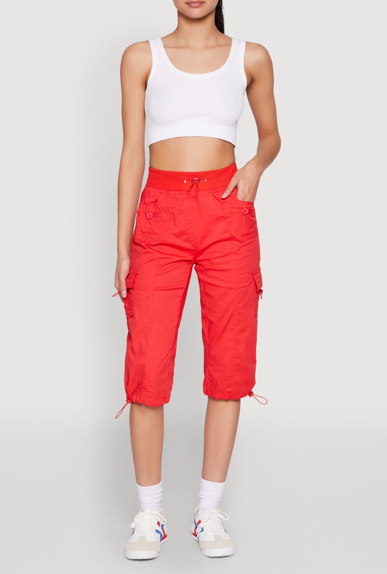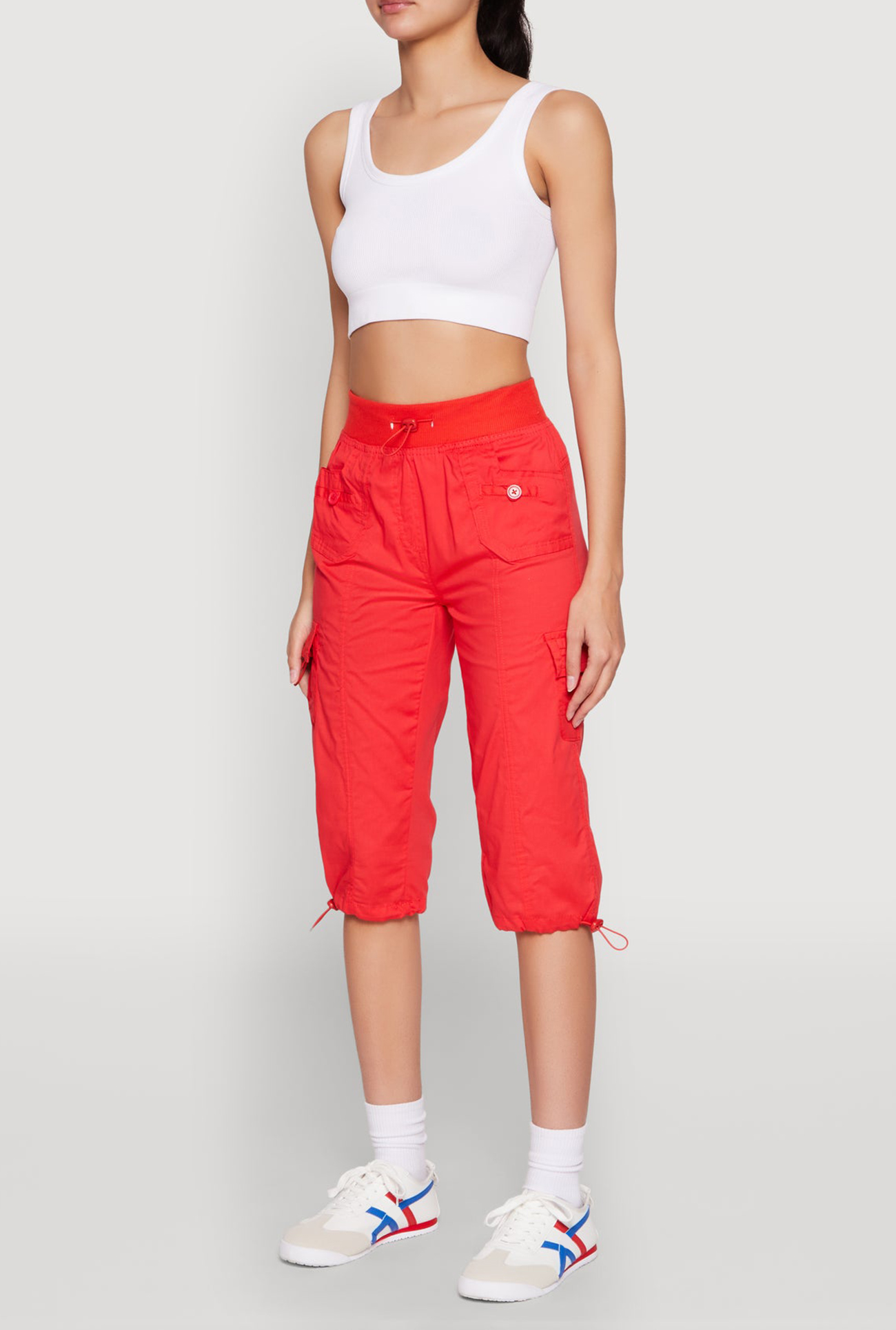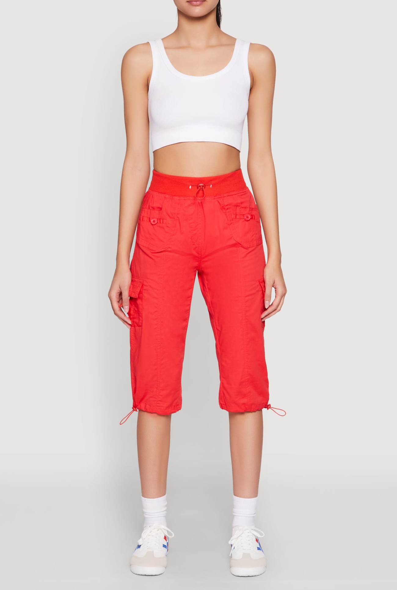 These high-waisted capris feature faux pockets for a sleek look , customizable fit. Whether you're running errands or hanging out with friends, these versatile bottoms are your new go-to for laid-back chic. Embrace the trend and elevate your wardrobe with these must-have cargo pants that are as functional as they are fashionable.