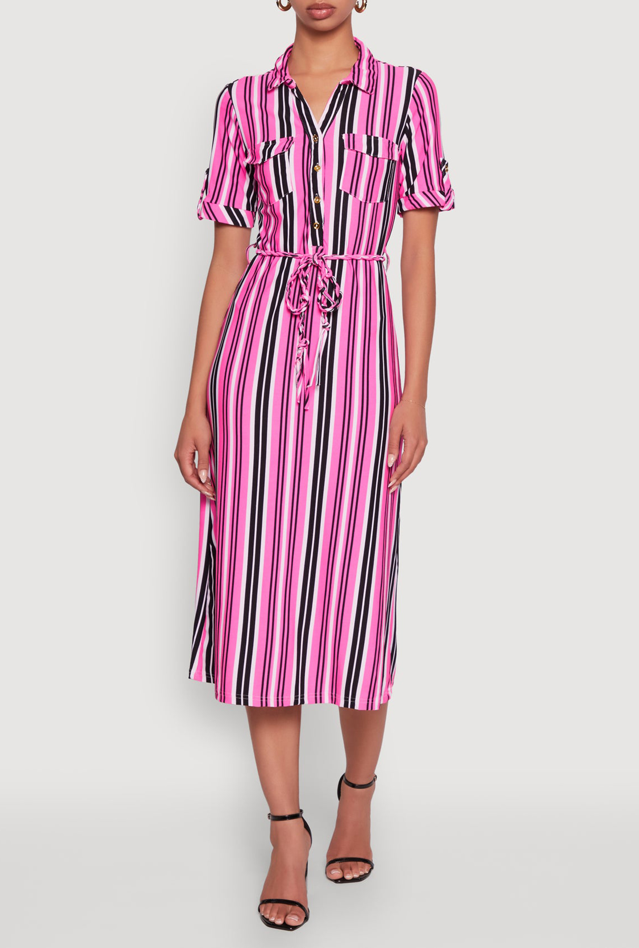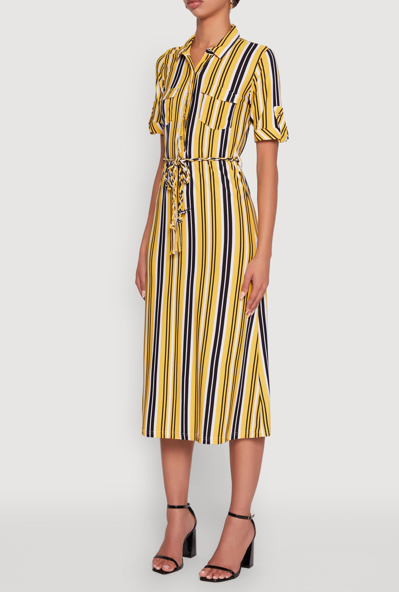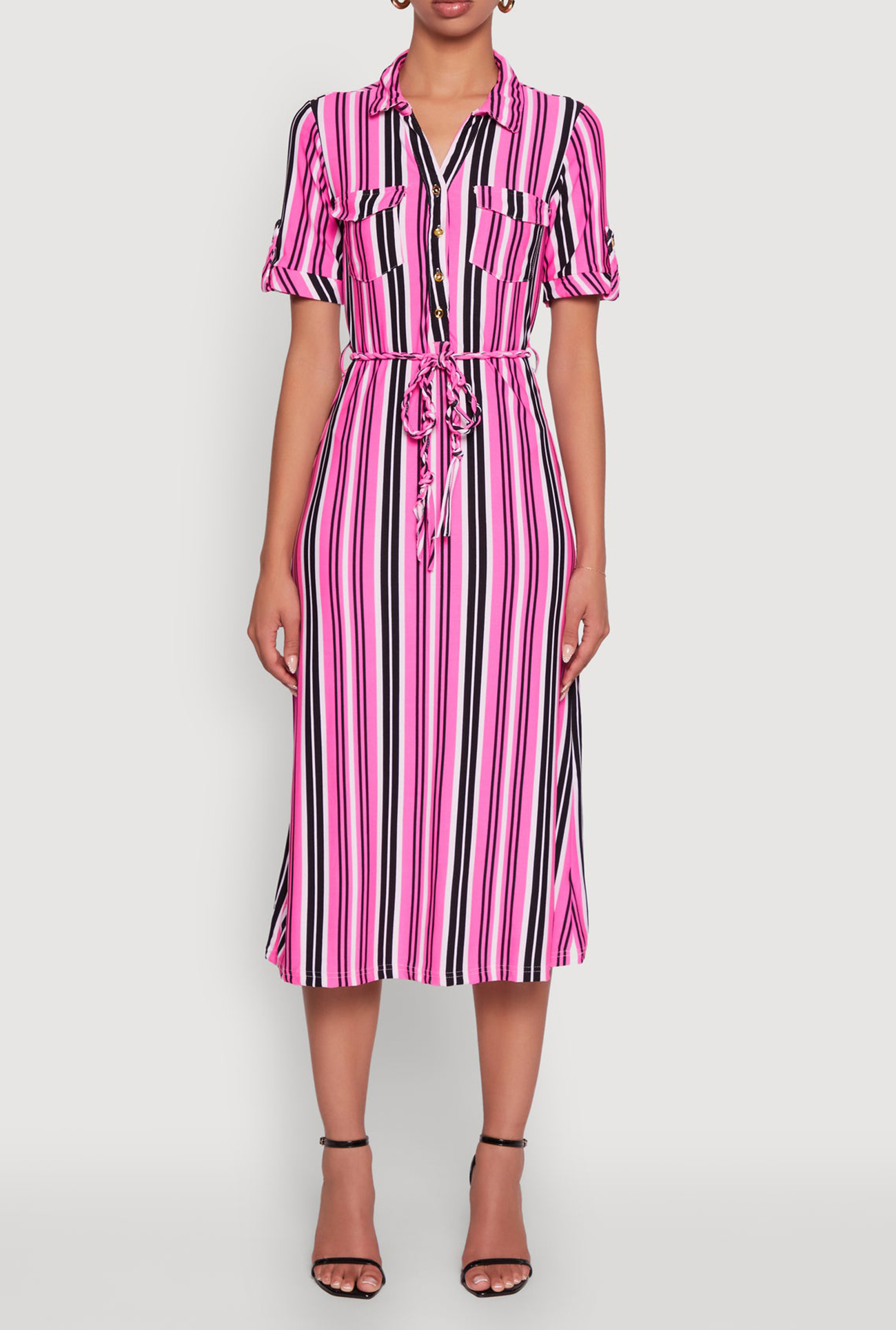 Step into effortless style with this Striped lace up dress. Perfect for casual days or office vibes, its classic fit and timeless shirt collar give you a polished look that never goes out of fashion. The half button design adds a modern twist, while the tie waist lets you flaunt your silhouette with ease. Whether you're heading to brunch or a meeting, this striped midi dress has got your back.