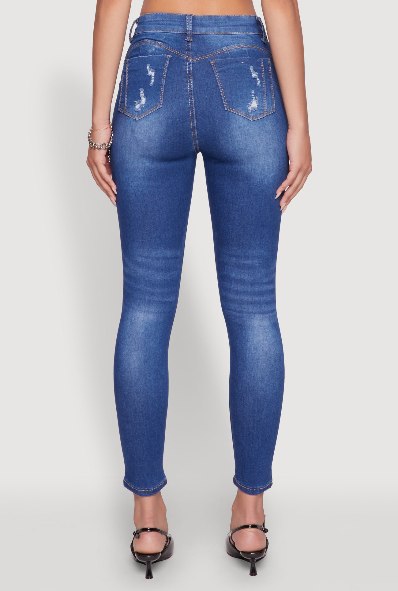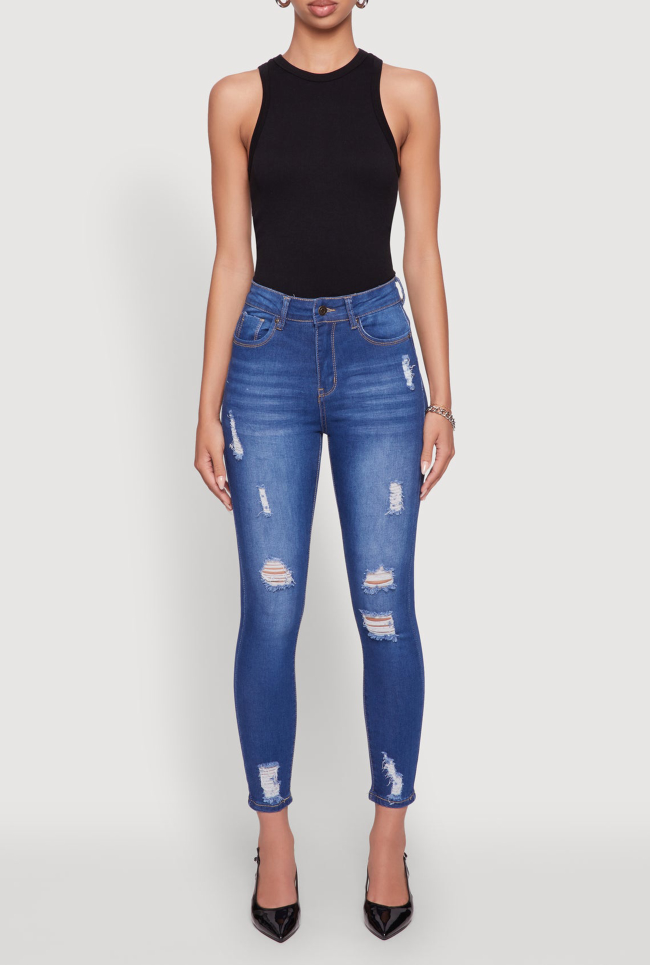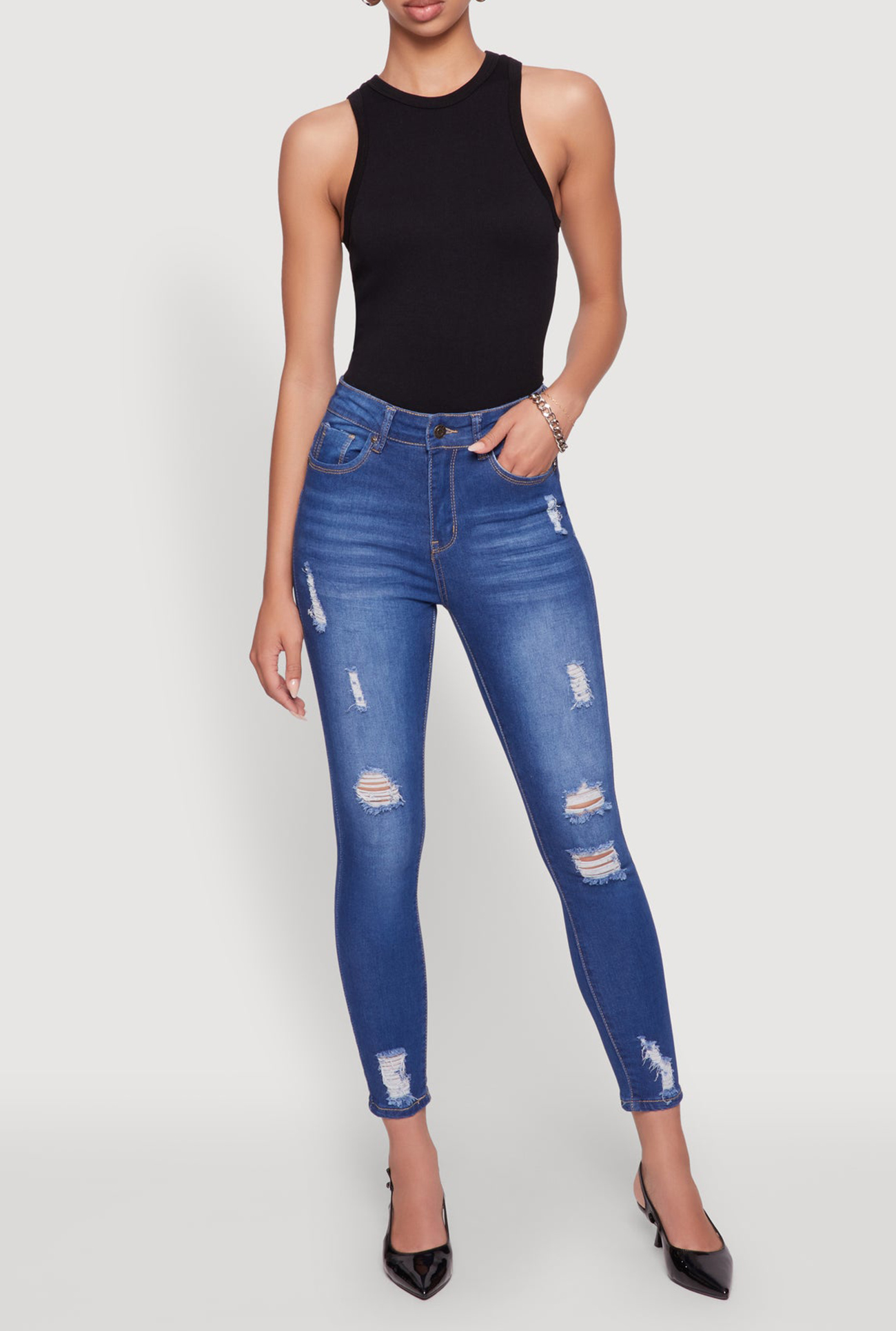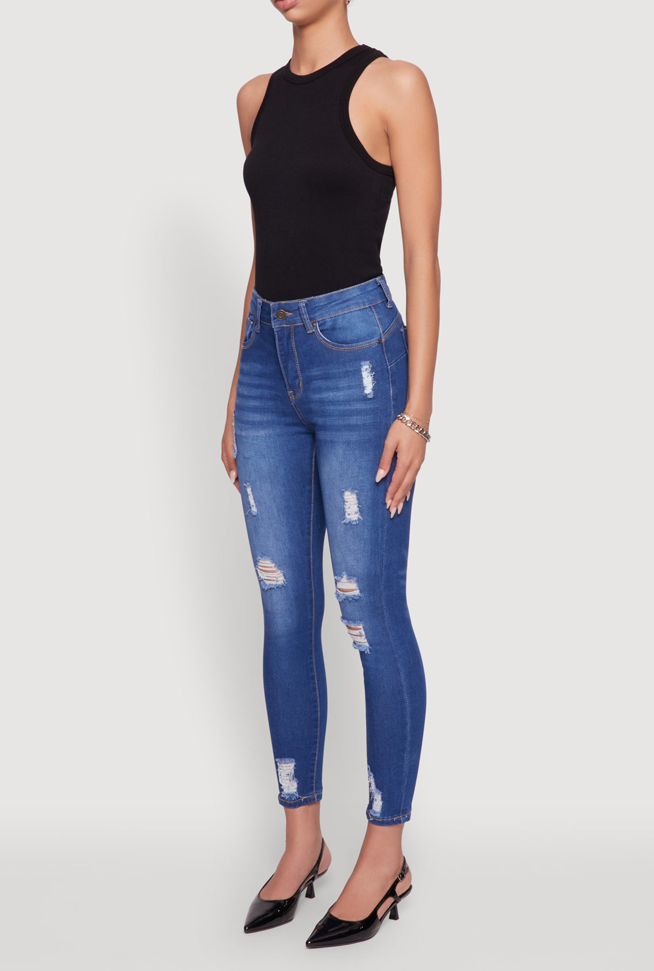 These jeans are the perfect blend of edgy and chic, featuring a trendy distressed look with frayed details that scream cool. Designed for comfort and style, they hug your curves with a skinny fit that moves with you. Whether you're heading out with friends or just want to elevate your everyday style, these jeans are your new go-to. Plus, the cropped hem adds a fun, flirty touch that’s perfect for showing off your favorite shoes.